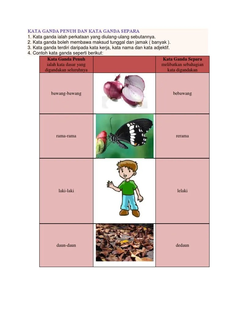 Video ini merupakan nota tentang kata ganda bagi murid tahap satu sekolah rendah di malaysia. Tatabahasa online worksheet for 2. Kata ganda penuh terbentuk daripada proses penggandaan semua atau seluruh kata dasar. Nota kata ganda penuh tahun 2. Kata ganda penuh bahasa melayu tahun 3 luftballons. You can do the exercises online or download the worksheet as.